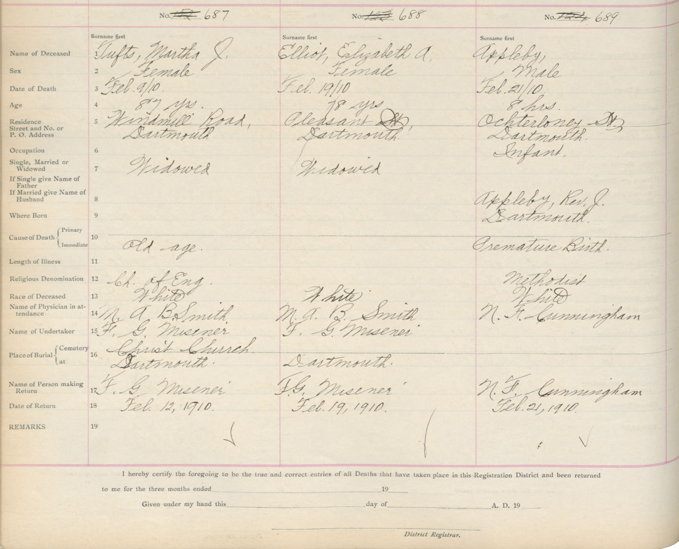 Male Death Registration: Year: 1910 book: 9 page: 115 number: 689