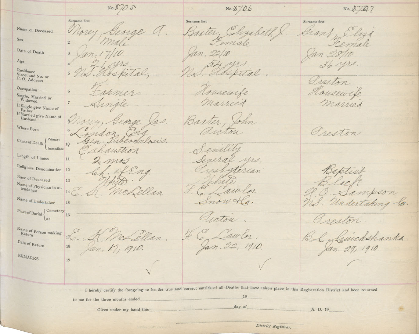 Death Registration: Year: 1910 book: 9 page: 118 number: 707