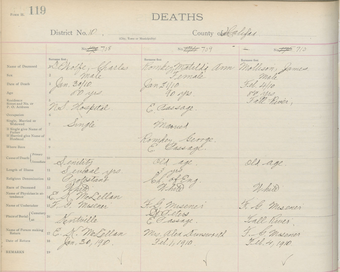 Death Registration: Year: 1910 book: 9 page: 119 number: 710