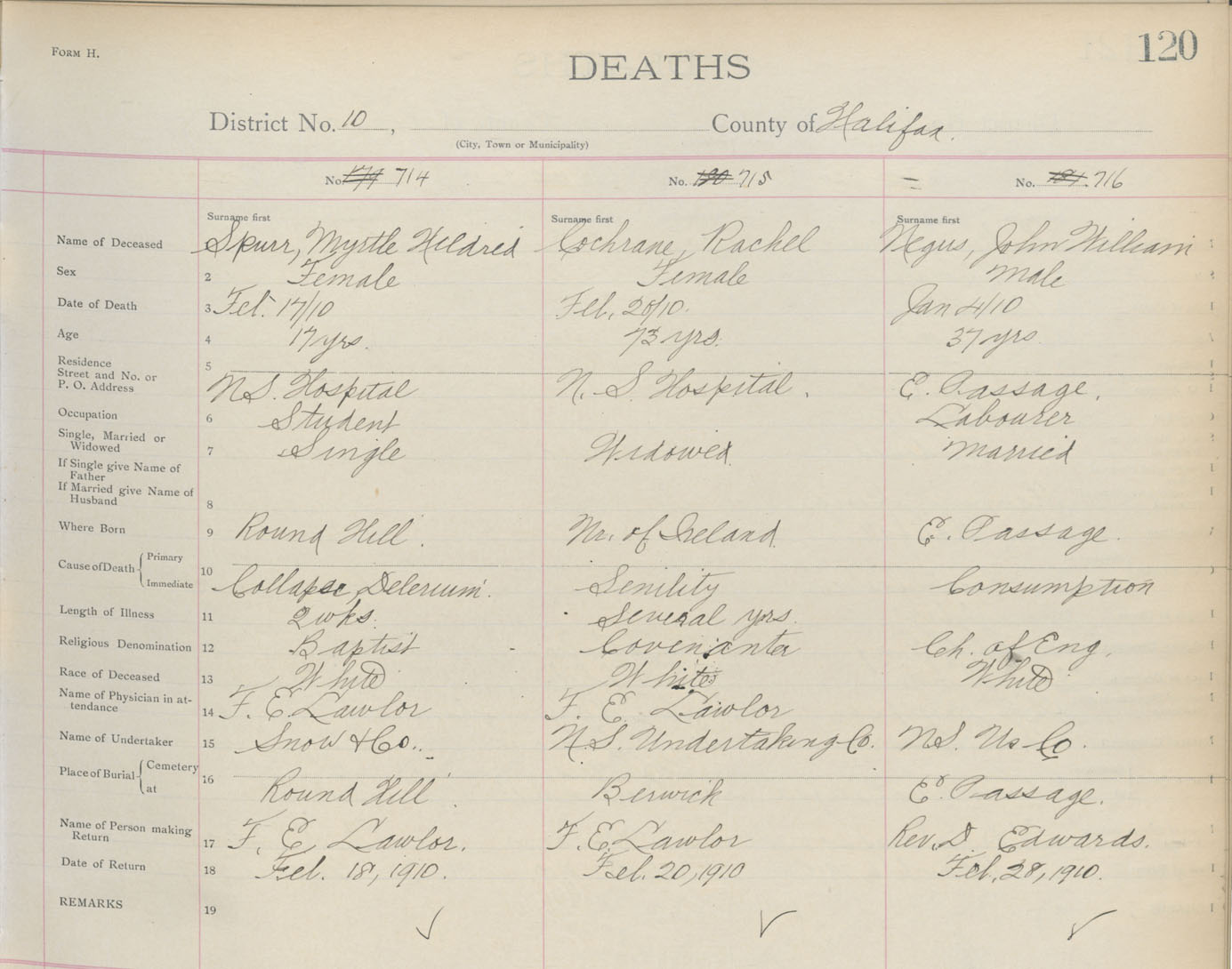 Death Registration: Year: 1910 book: 9 page: 120 number: 716