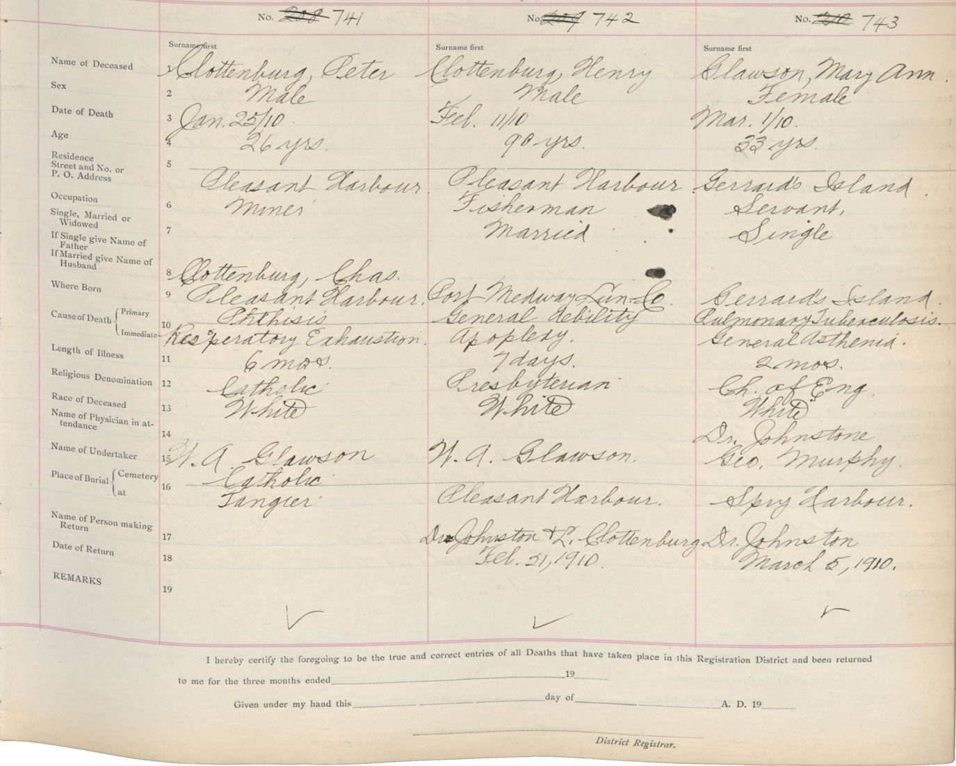 Death Registration: Year: 1910 book: 9 page: 124 number: 743