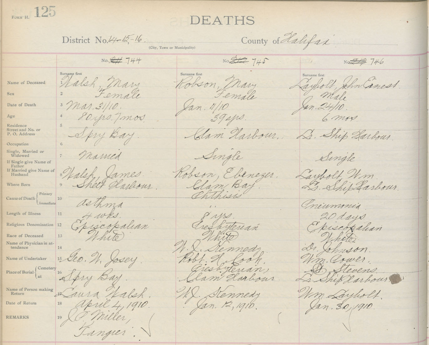 Death Registration: Year: 1910 book: 9 page: 125 number: 746