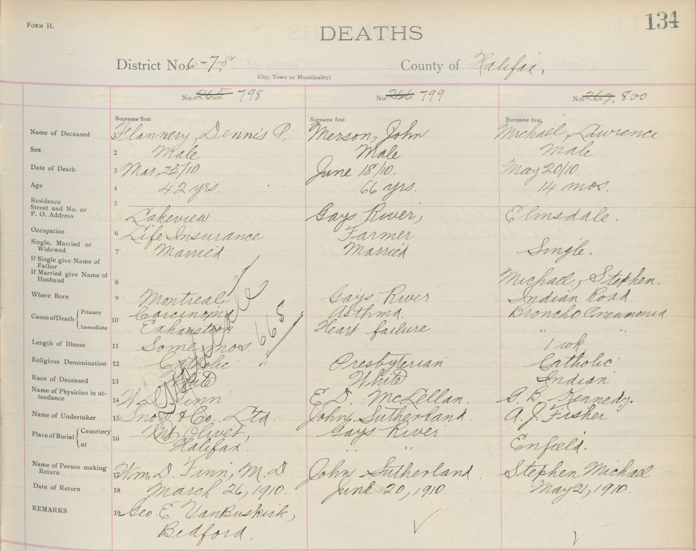 Death Registration: Year: 1910 book: 9 page: 134 number: 798