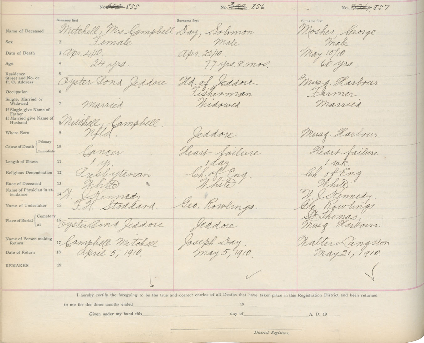 Death Registration: Year: 1910 book: 9 page: 143 number: 855
