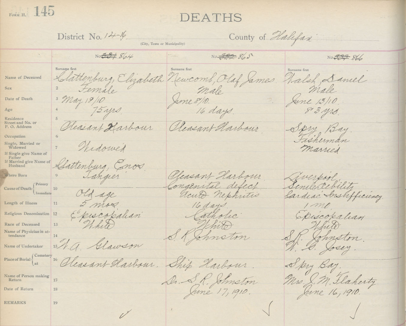 Death Registration: Year: 1910 book: 9 page: 145 number: 864