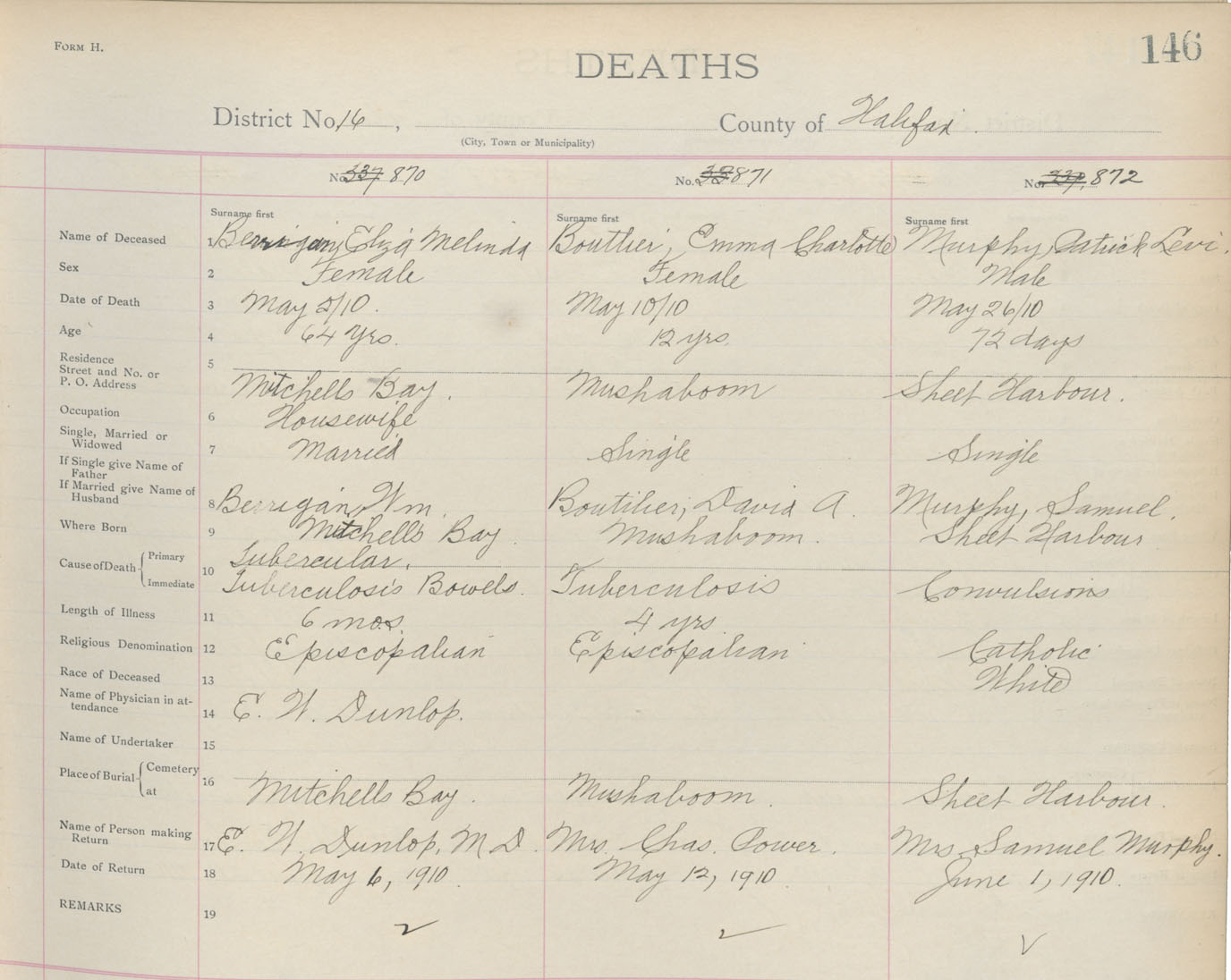 Death Registration: Year: 1910 book: 9 page: 146 number: 870