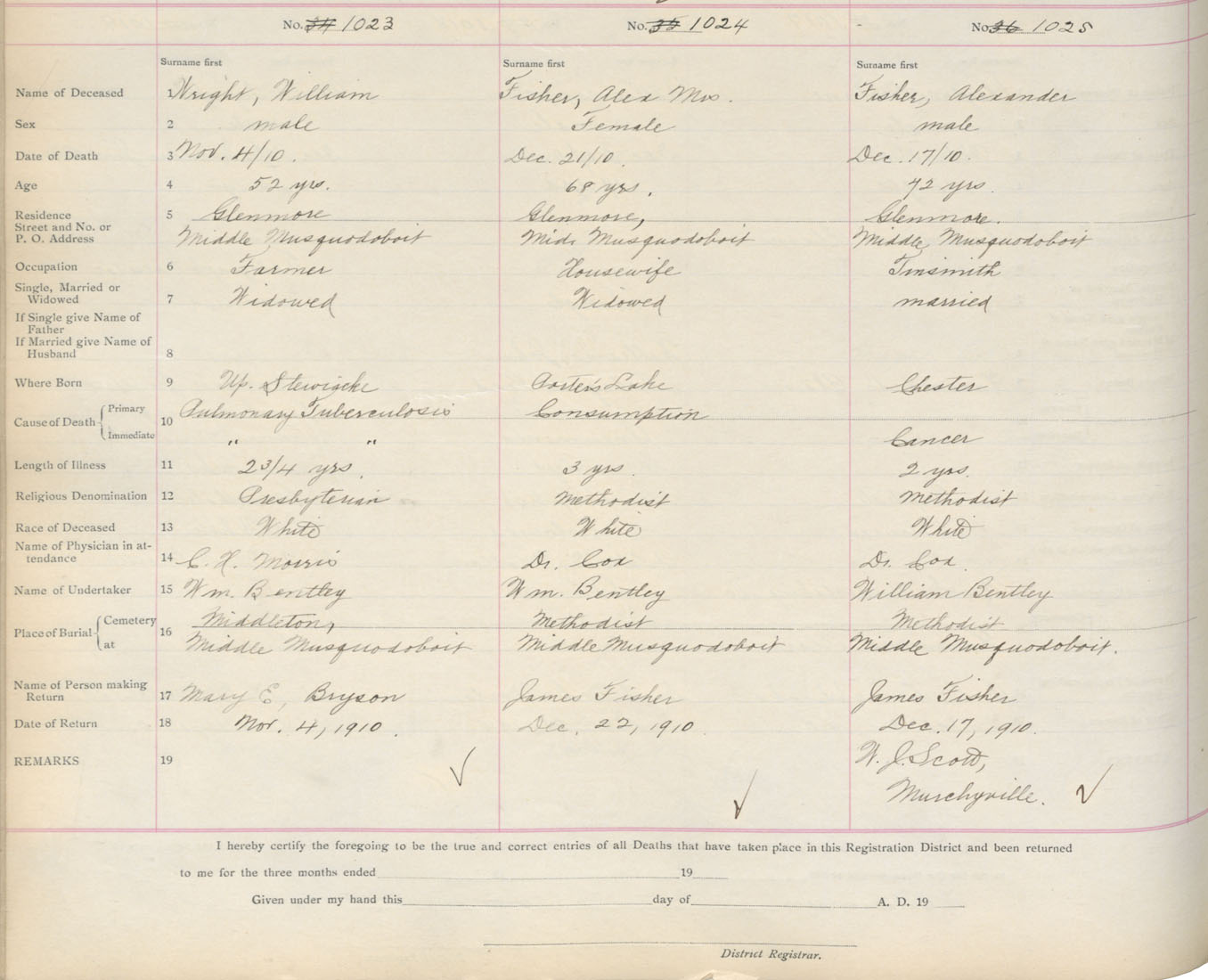 Death Registration: Year: 1910 book: 9 page: 171 number: 1023