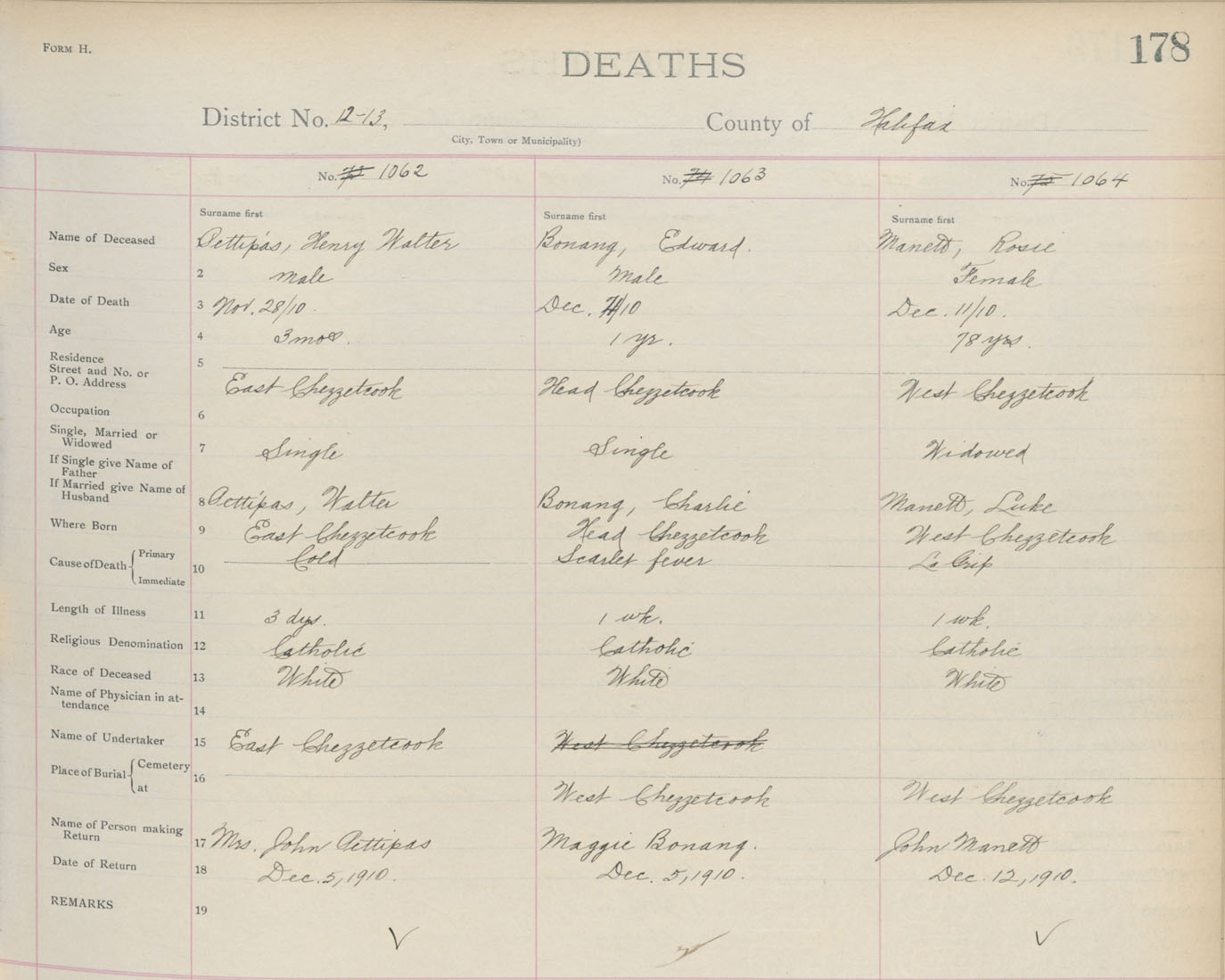 Death Registration: Year: 1910 book: 9 page: 178 number: 1062