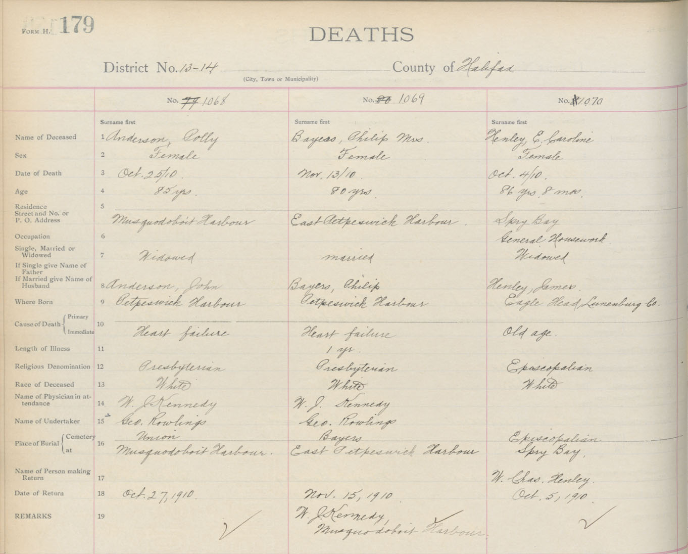 Death Registration: Year: 1910 book: 9 page: 179 number: 1068