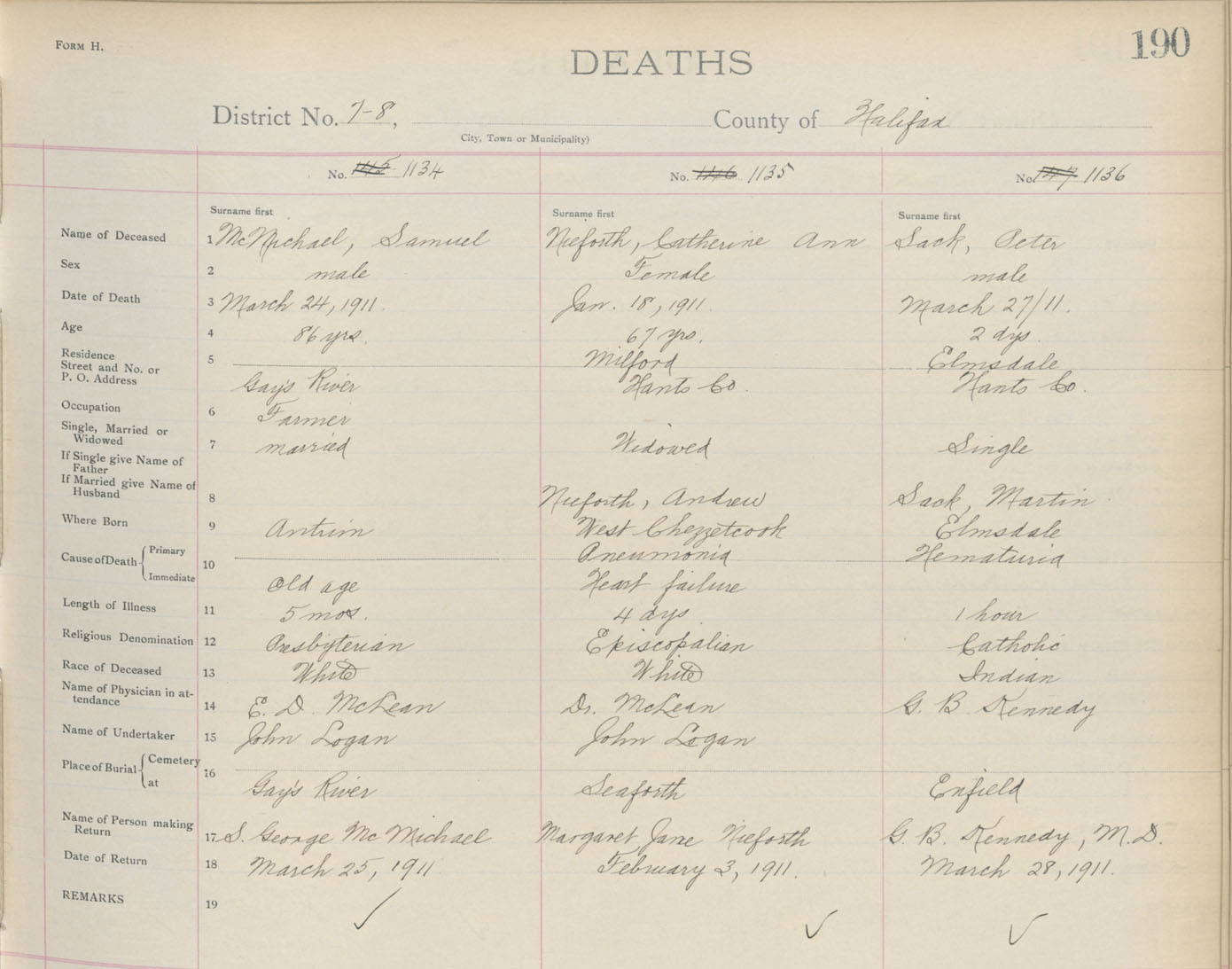 Death Registration: Year: 1911 book: 9 page: 190 number: 1134