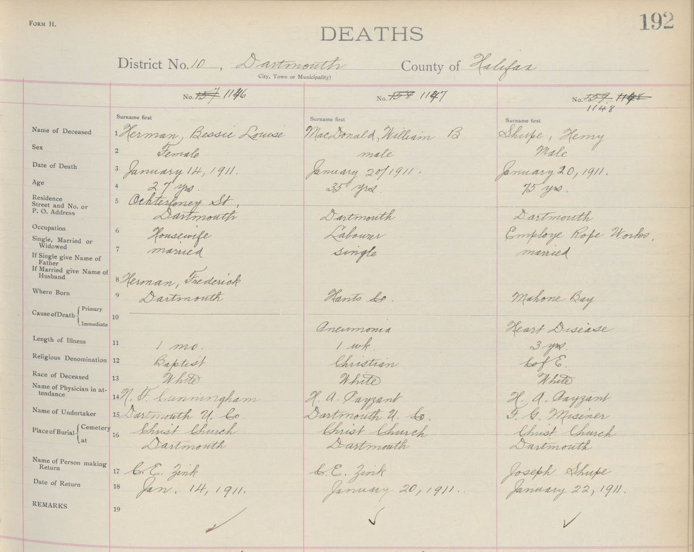 Death Registration: Year: 1911 book: 9 page: 192 number: 1146
