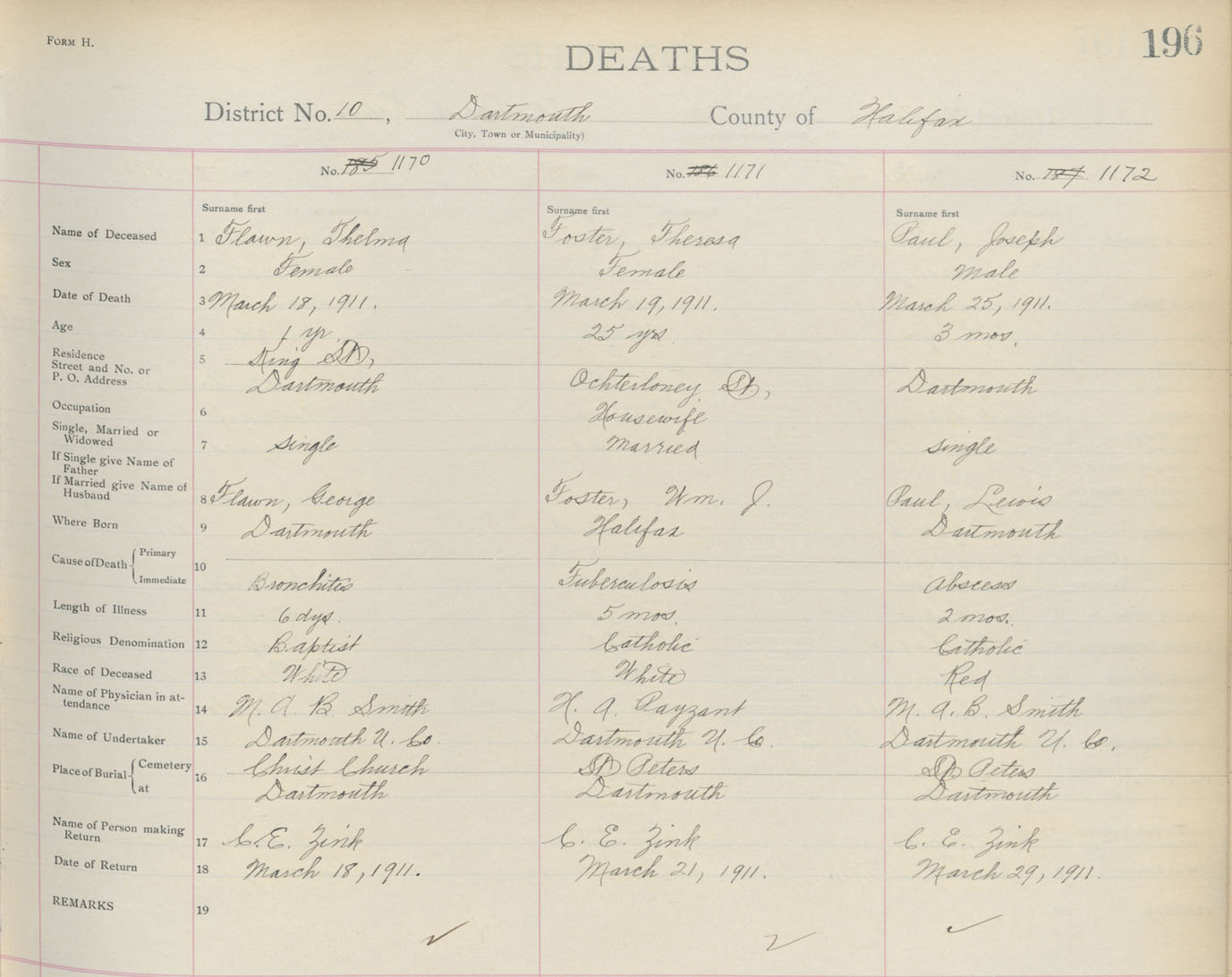 Death Registration: Year: 1911 book: 9 page: 196 number: 1170