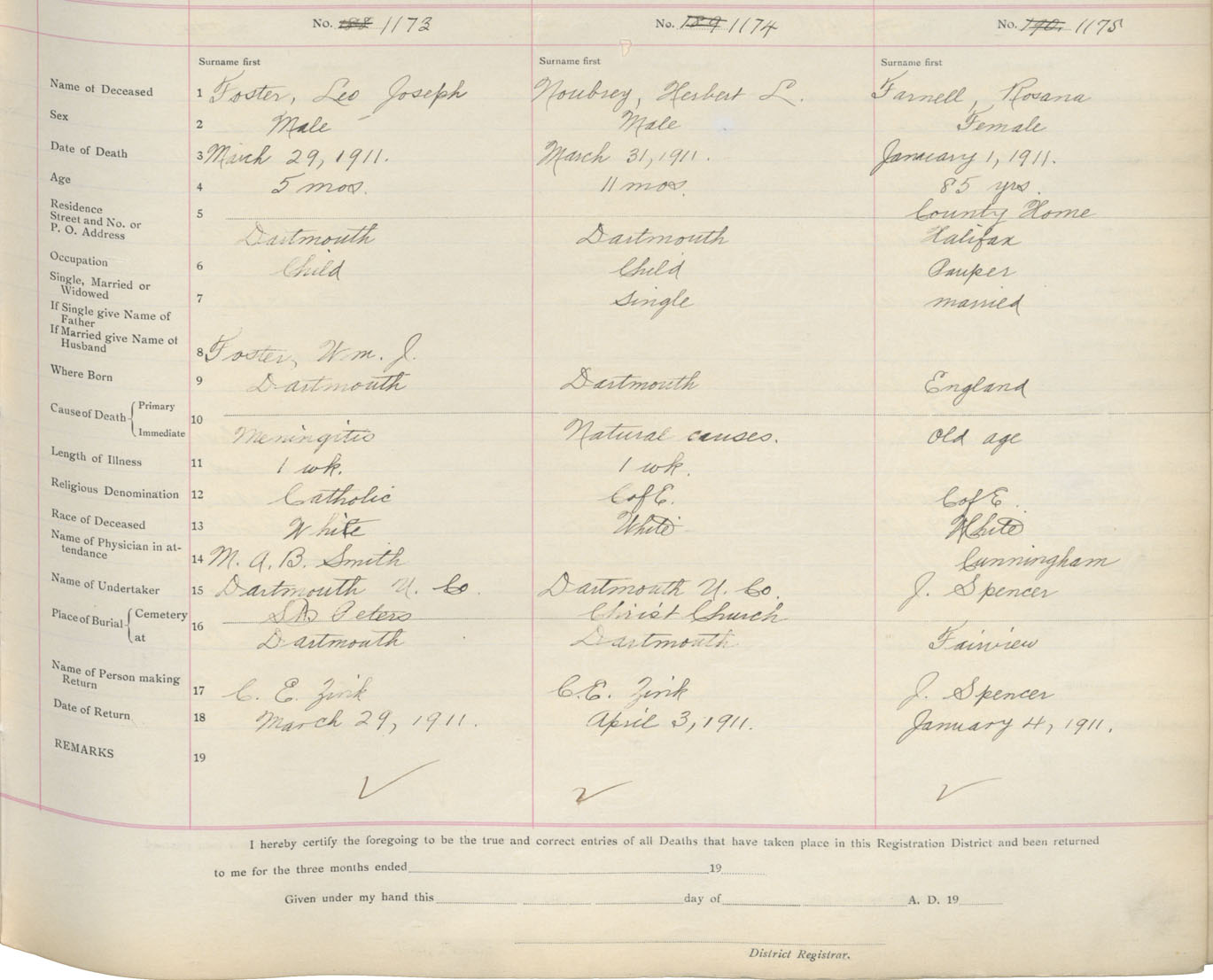 Death Registration: Year: 1911 book: 9 page: 196 number: 1173