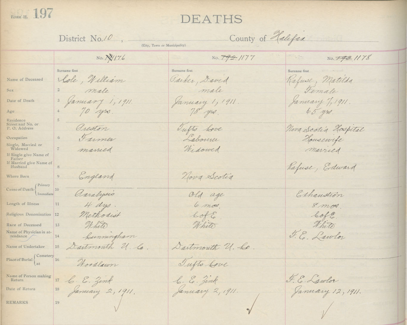 Death Registration: Year: 1911 book: 9 page: 197 number: 1176
