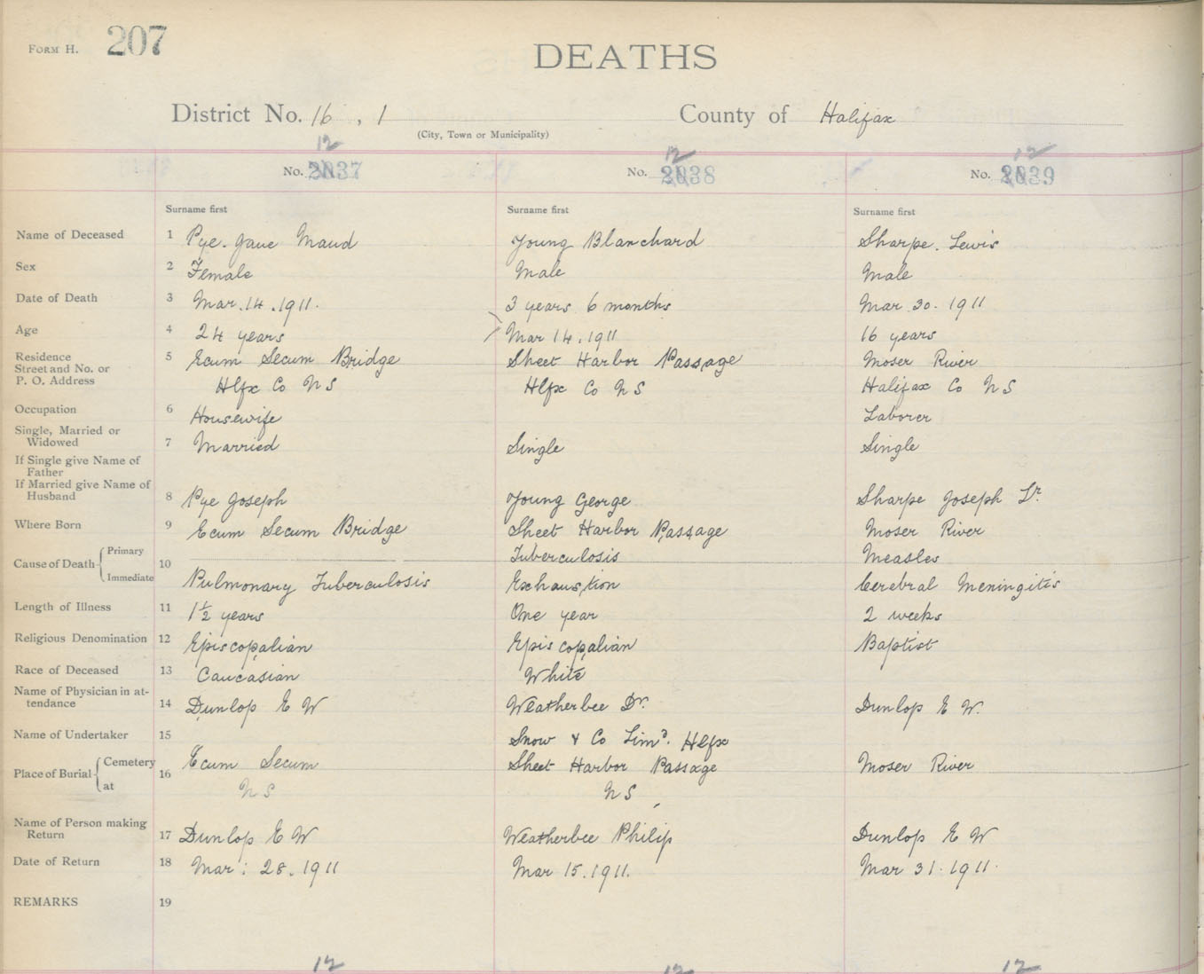 Death Registration: Year: 1911 book: 9 page: 207 number: 1237