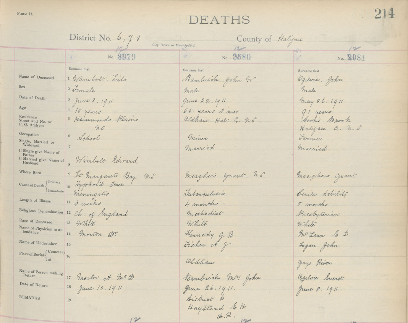 Death Registration: Year: 1911 book: 9 page: 214 number: 1279