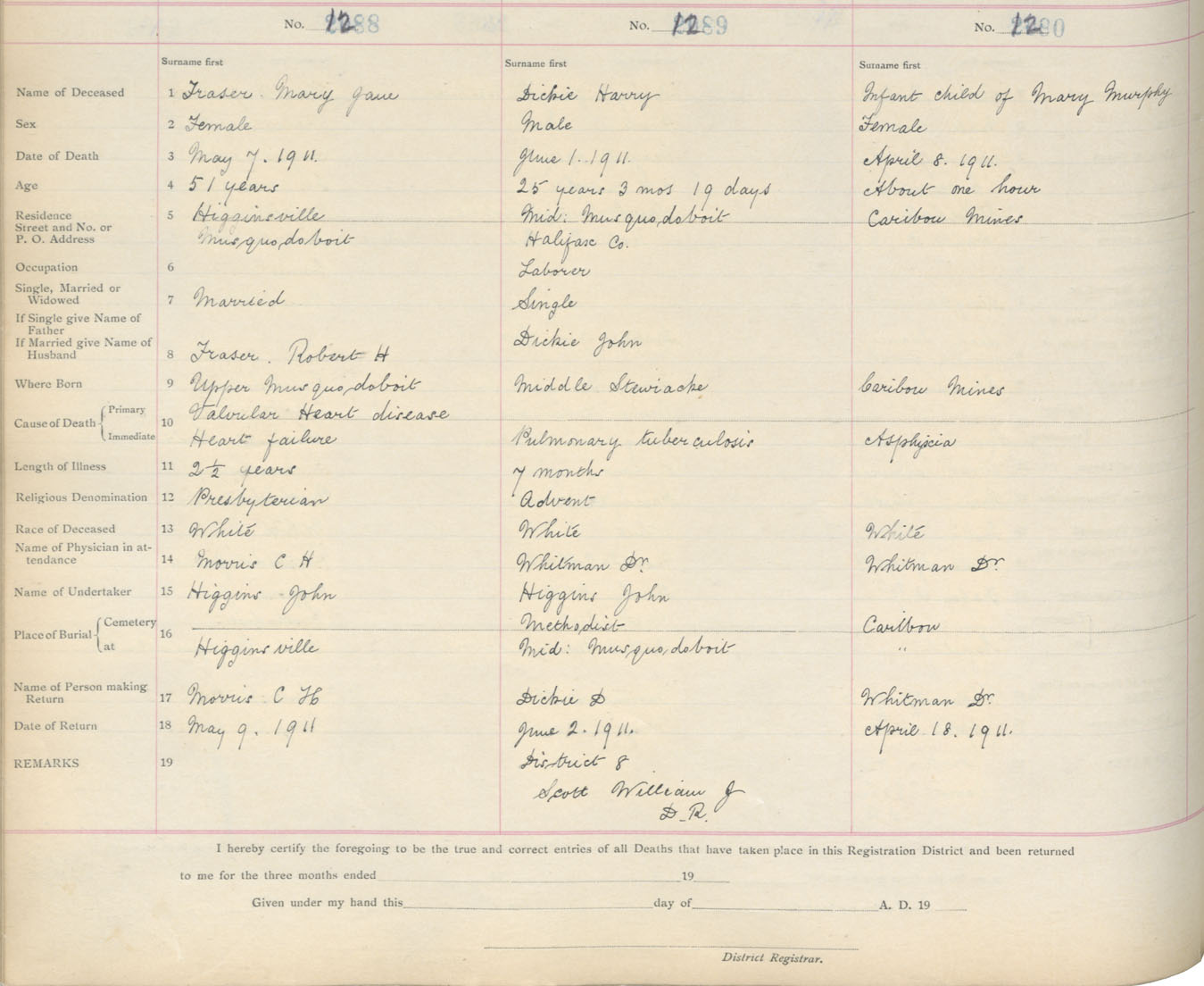 Death Registration: Year: 1911 book: 9 page: 215 number: 1288