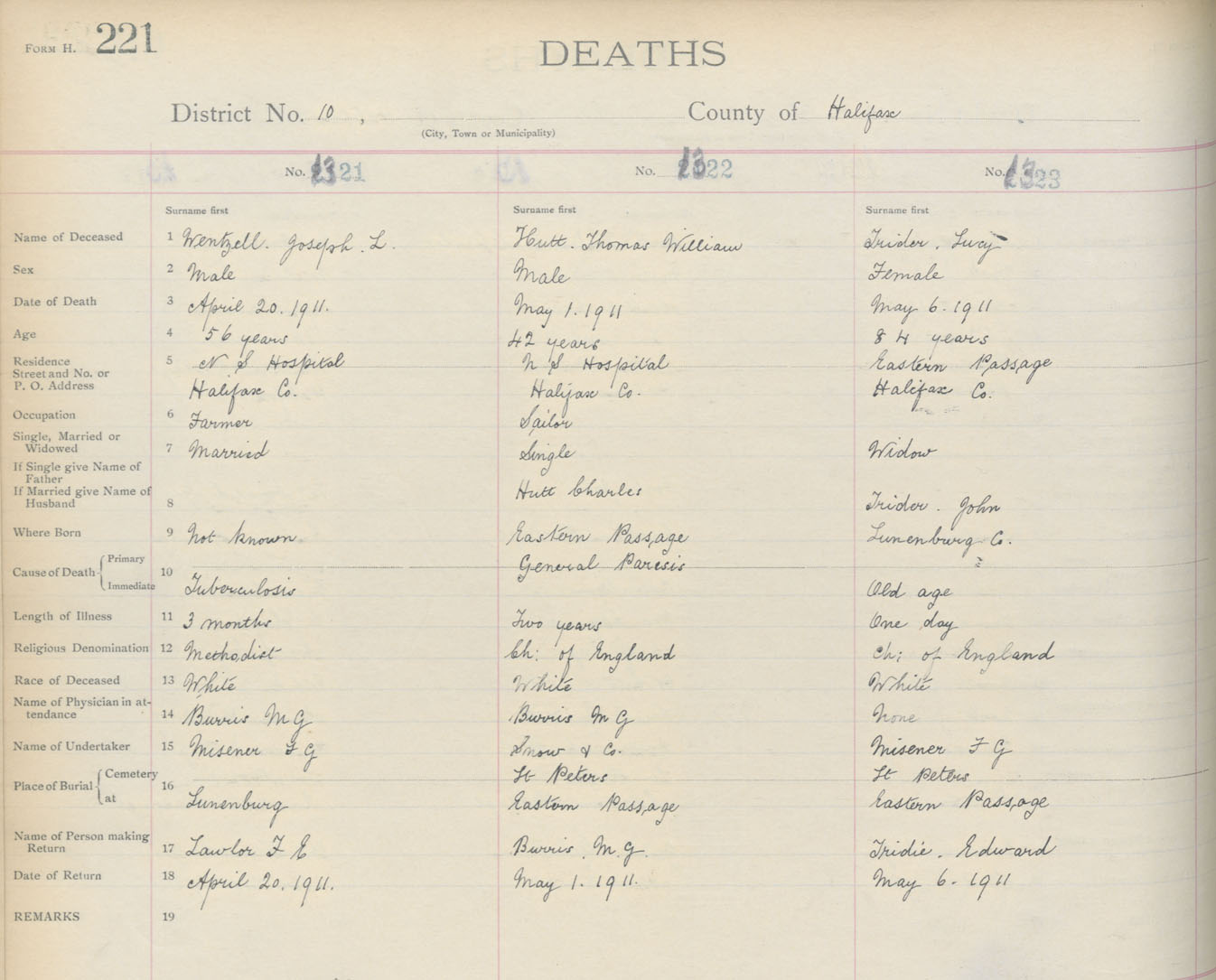 Death Registration: Year: 1911 book: 9 page: 221 number: 1321