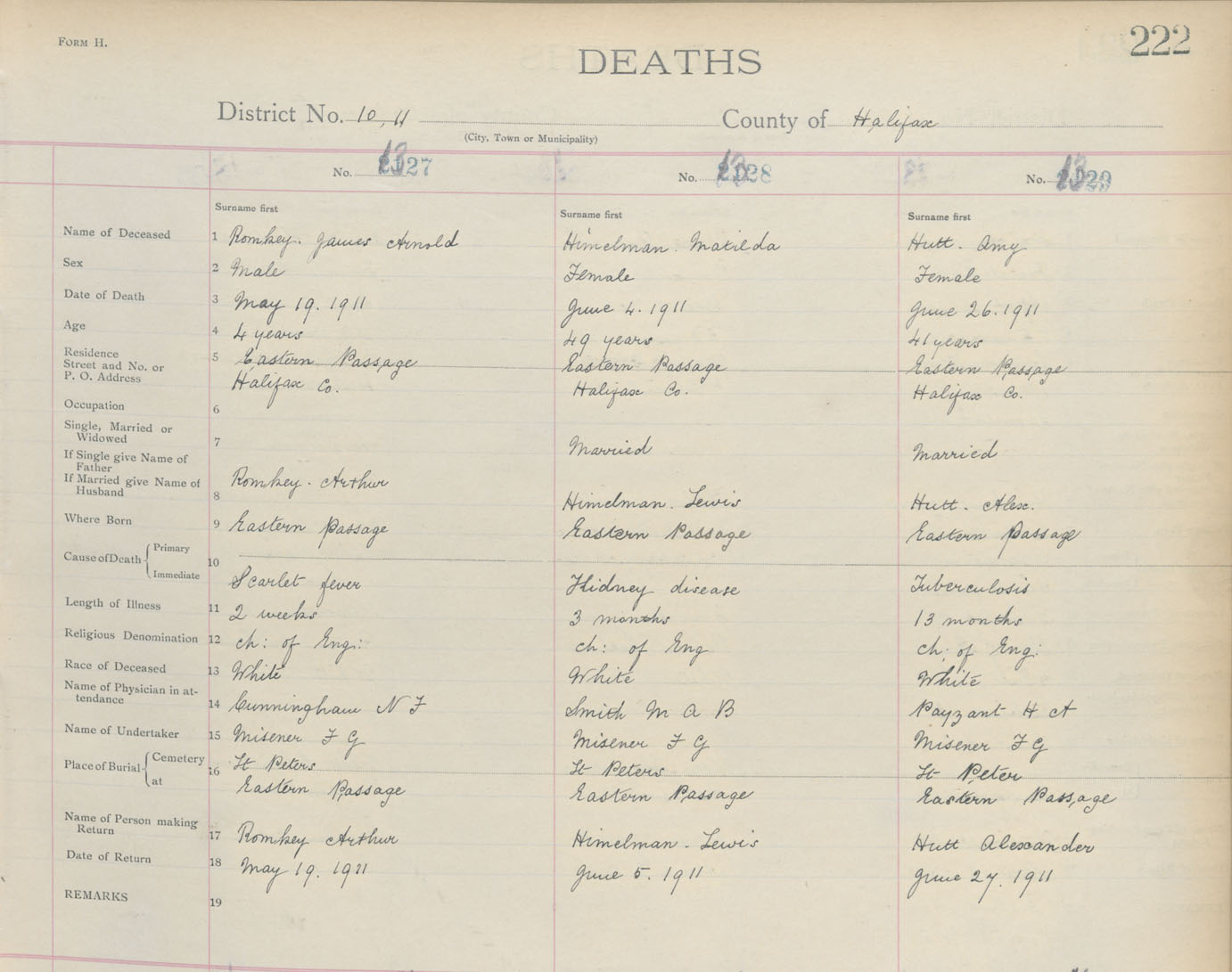 Death Registration: Year: 1911 book: 9 page: 222 number: 1327