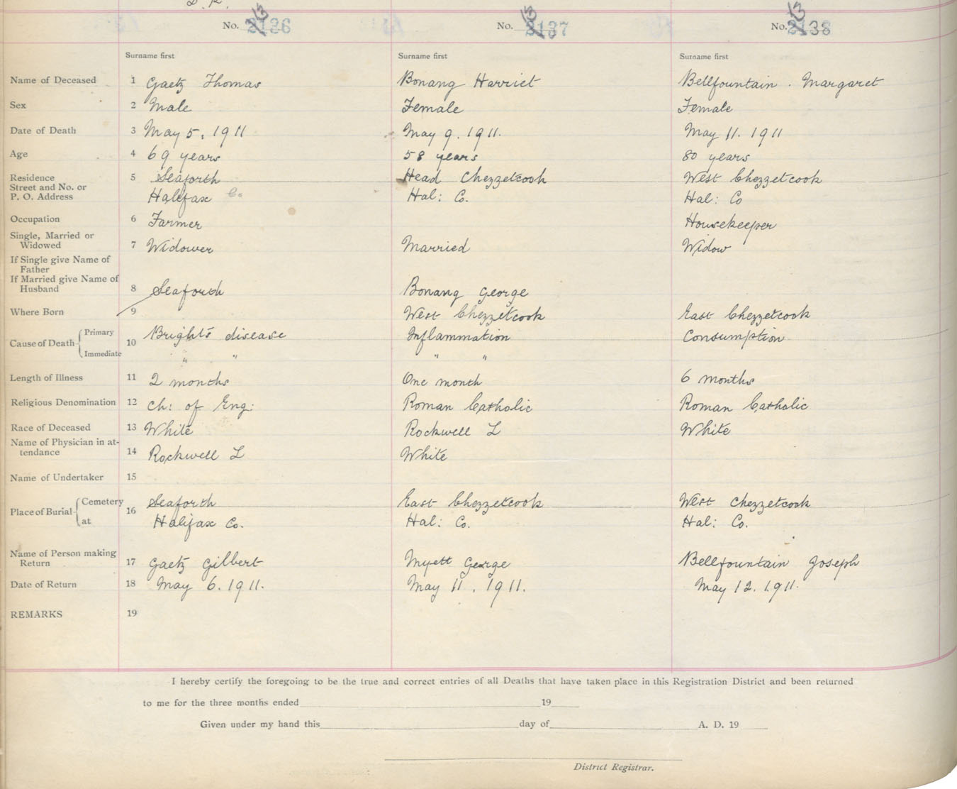 Death Registration: Year: 1911 book: 9 page: 223 number: 1336