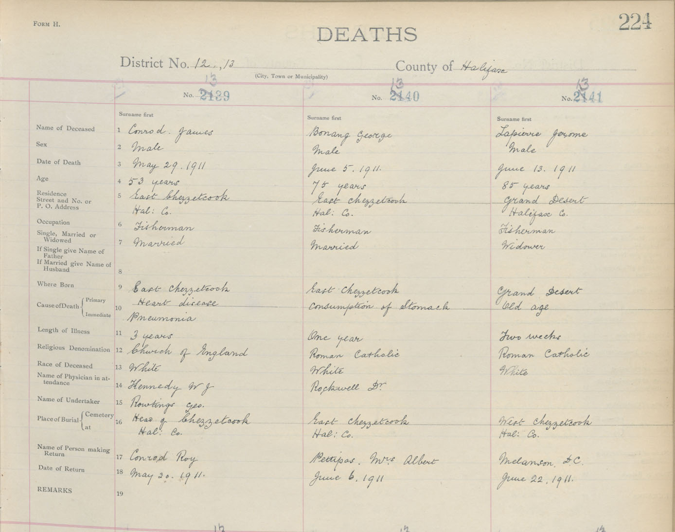 Death Registration: Year: 1911 book: 9 page: 224 number: 1339