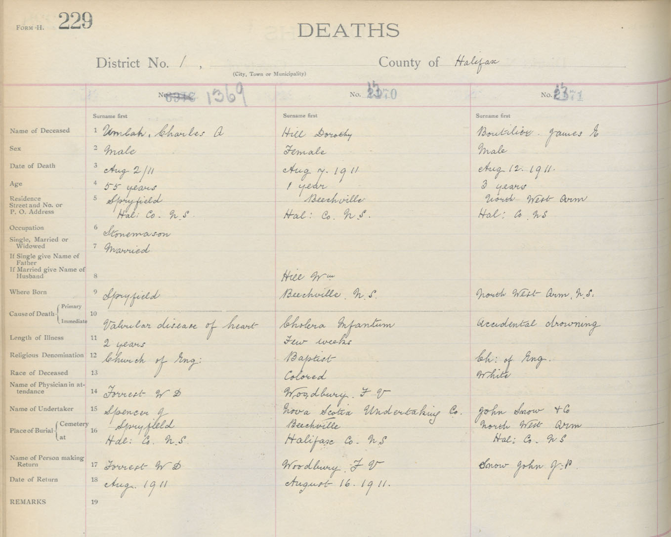 Death Registration: Year: 1911 book: 9 page: 229 number: 1369