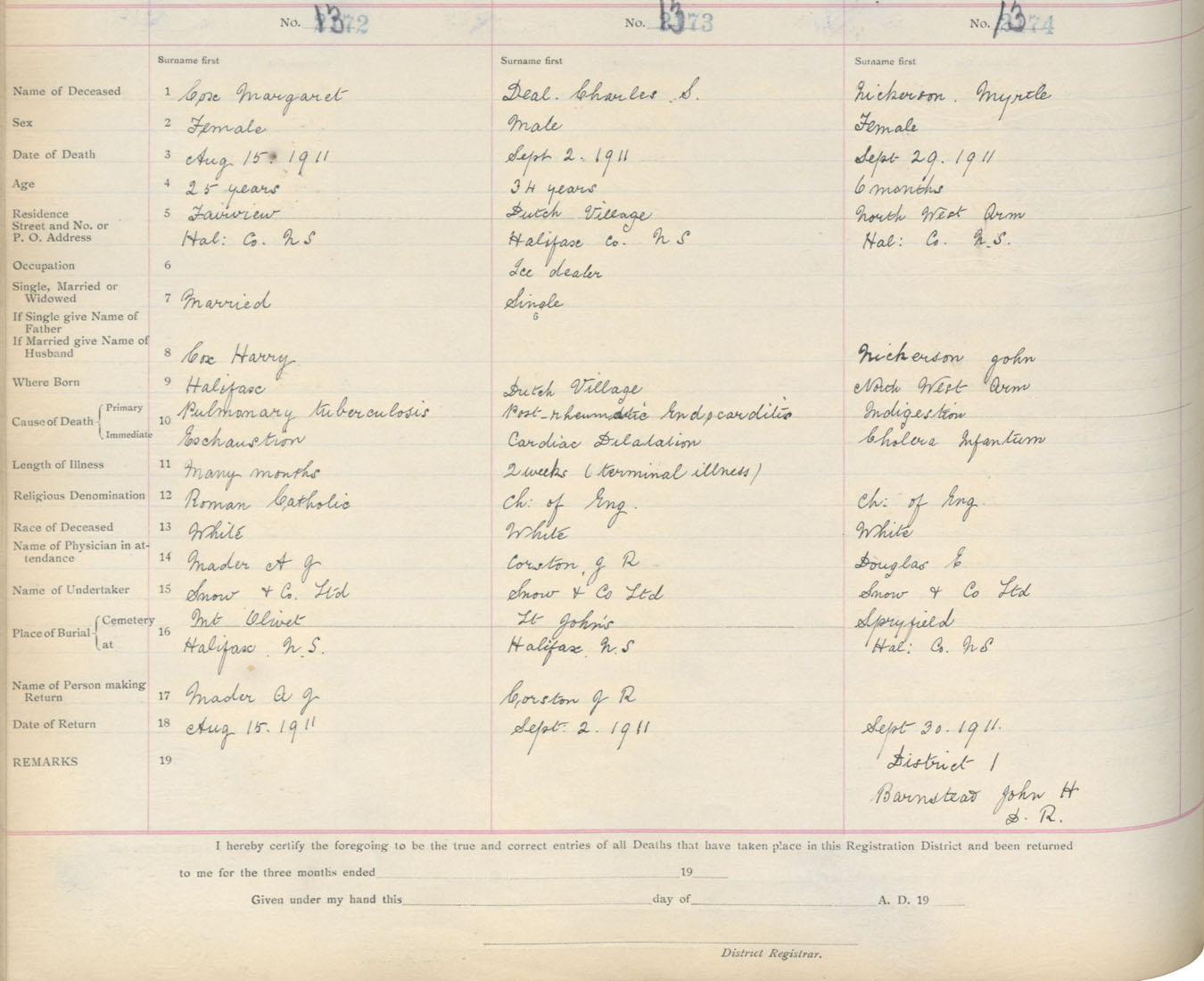 Death Registration: Year: 1911 book: 9 page: 229 number: 1372