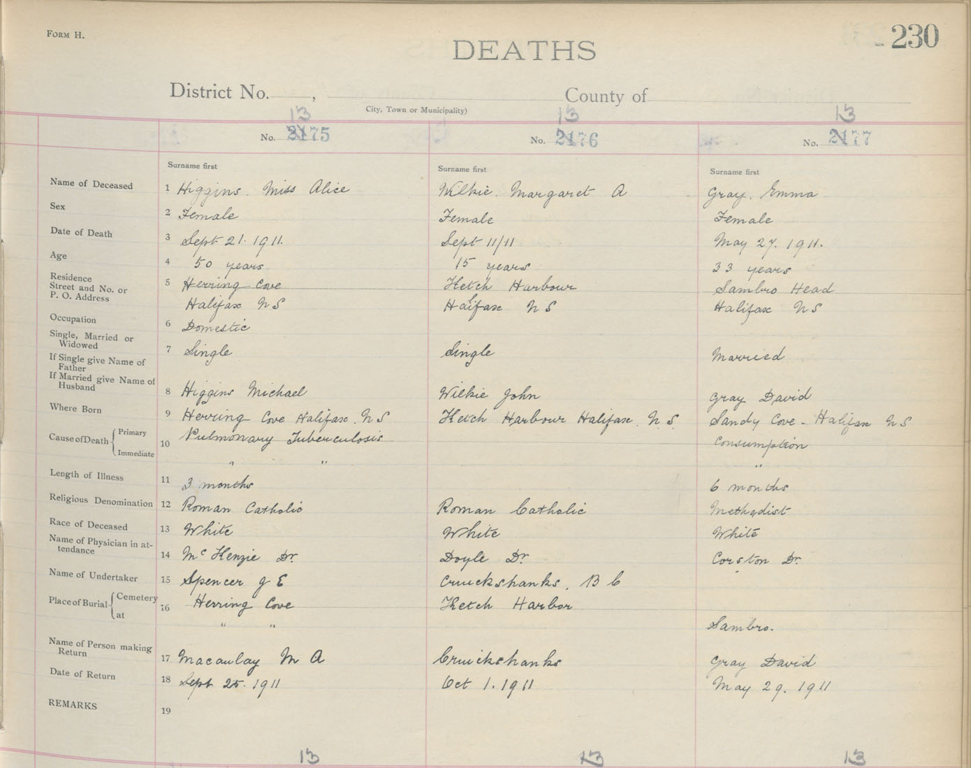 Death Registration: Year: 1911 book: 9 page: 230 number: 1375