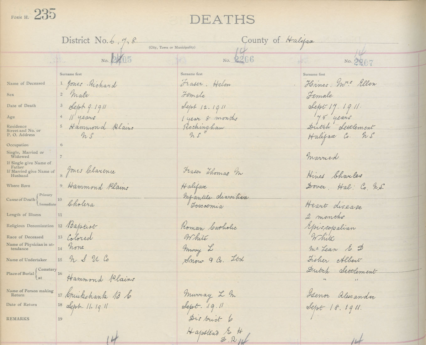 Death Registration: Year: 1911 book: 9 page: 235 number: 1405