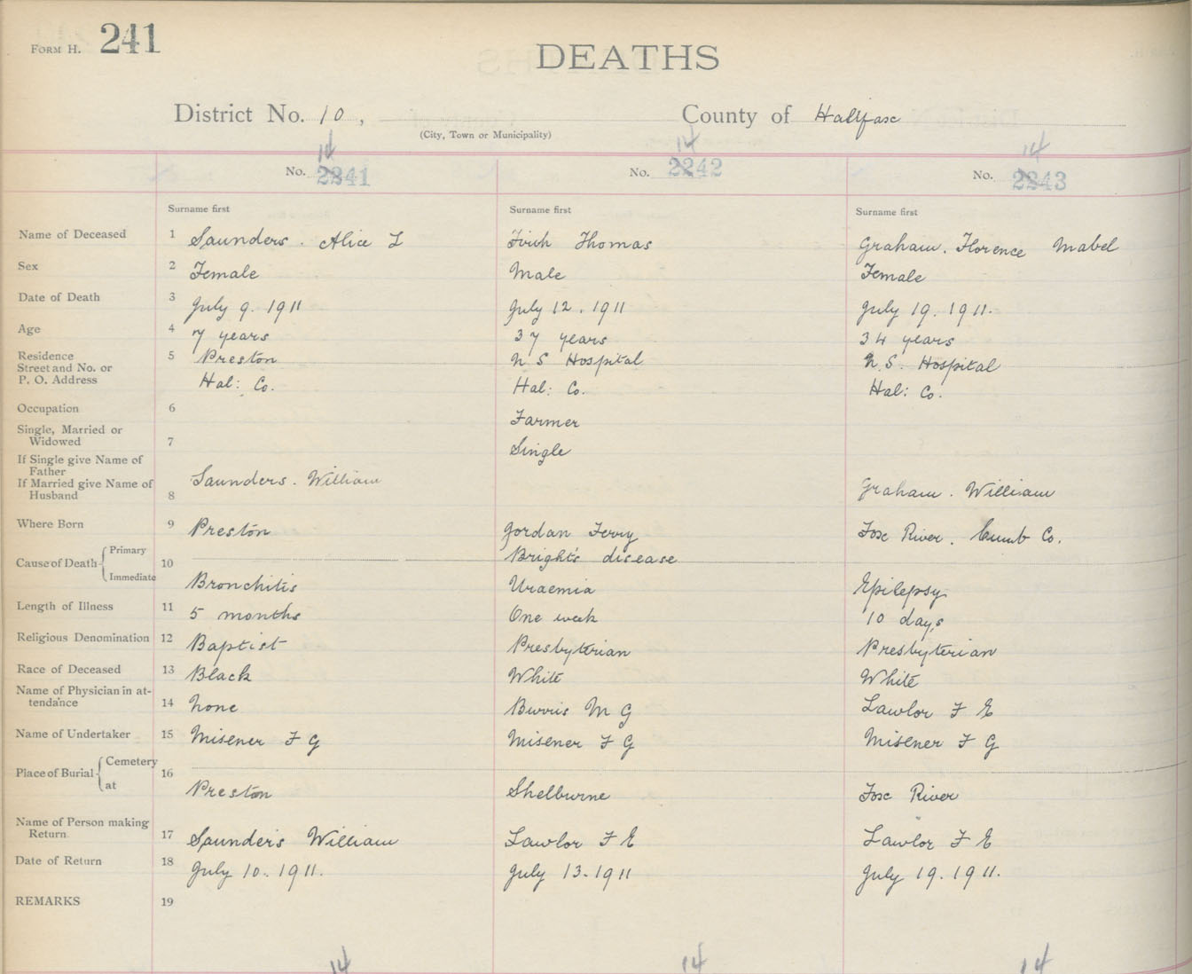 Death Registration: Year: 1911 book: 9 page: 241 number: 1441