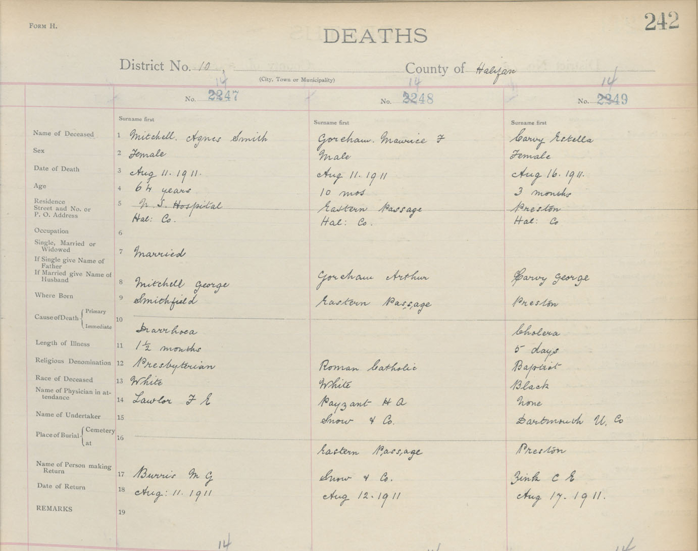 Death Registration: Year: 1911 book: 9 page: 242 number: 1447