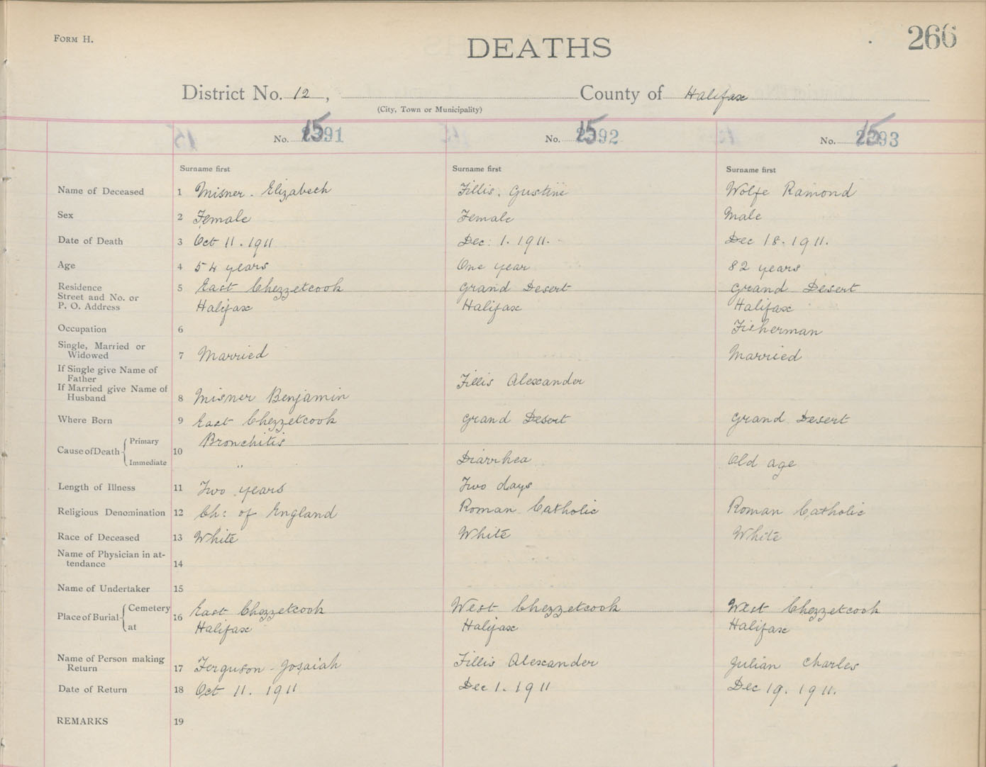 Death Registration: Year: 1911 book: 9 page: 266 number: 1593