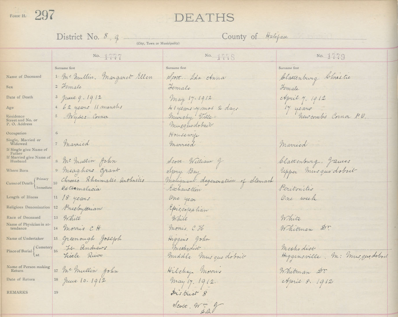 Death Registration: Year: 1912 book: 9 page: 297 number: 1779