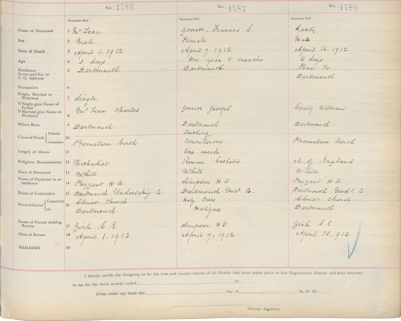 Male Death Registration: Year: 1912 book: 9 page: 298 number: 1788