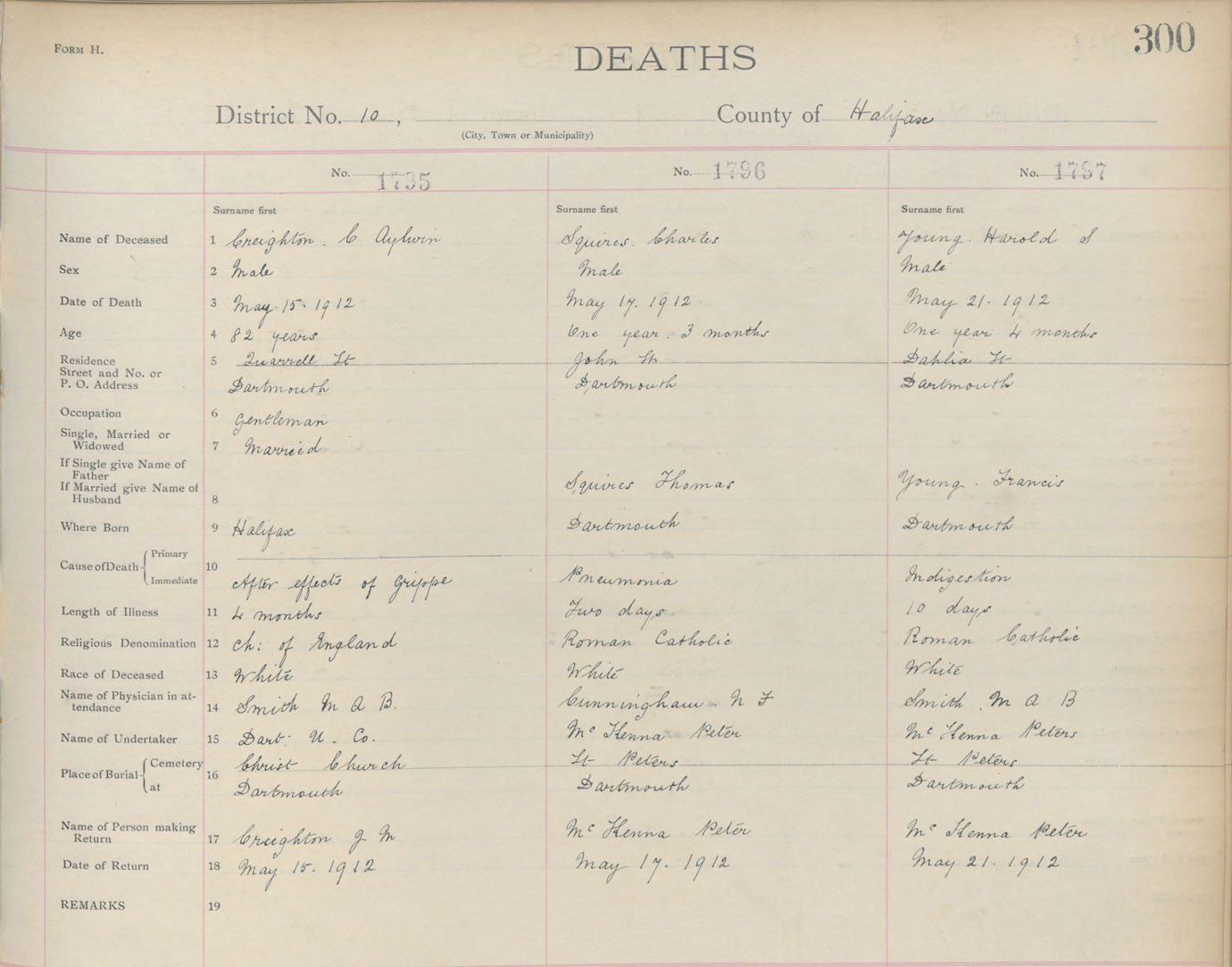 Death Registration: Year: 1912 book: 9 page: 300 number: 1797