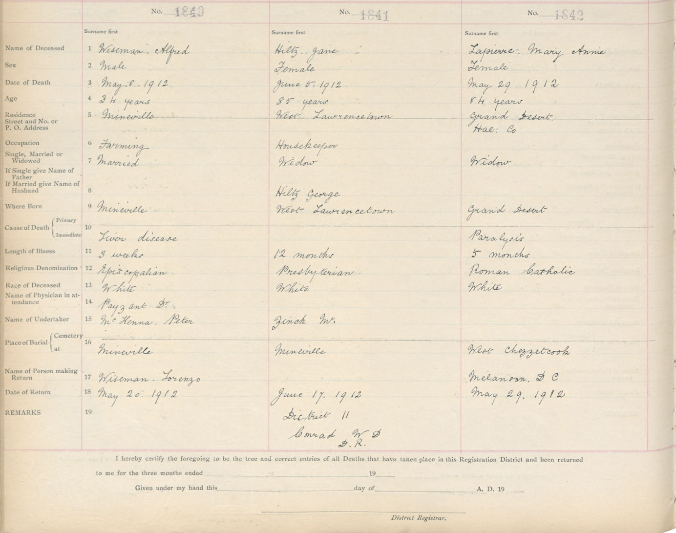 Death Registration: Year: 1912 book: 9 page: 307 number: 1842