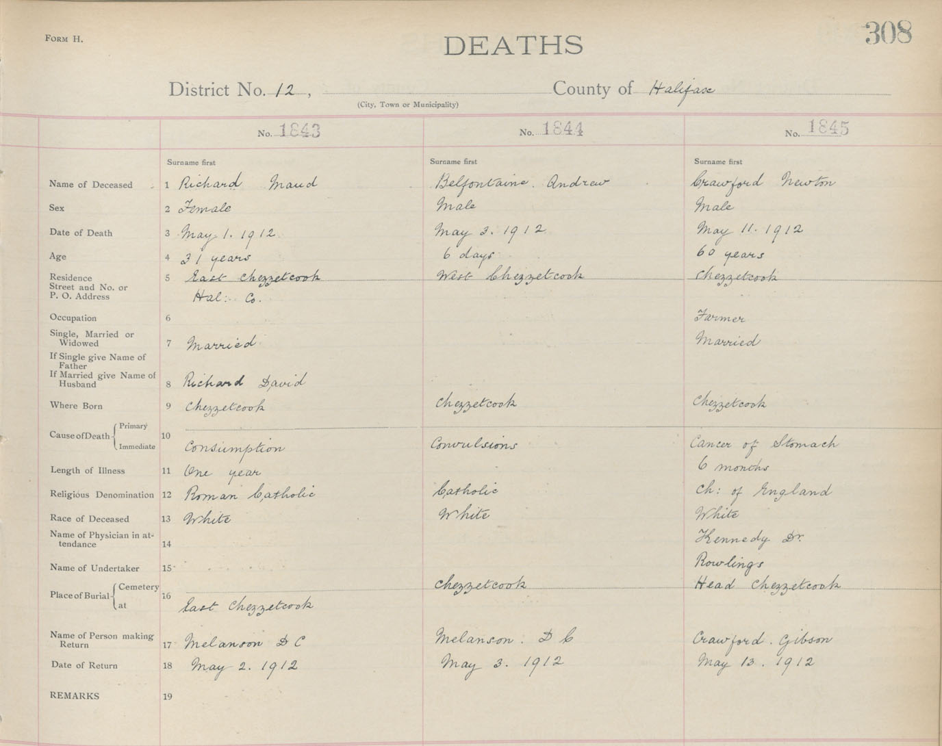 Death Registration: Year: 1912 book: 9 page: 308 number: 1845