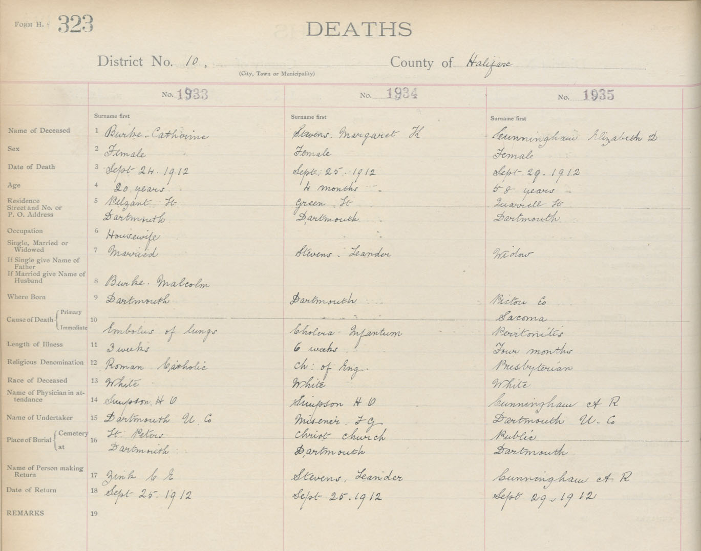 Death Registration: Year: 1912 book: 9 page: 323 number: 1935