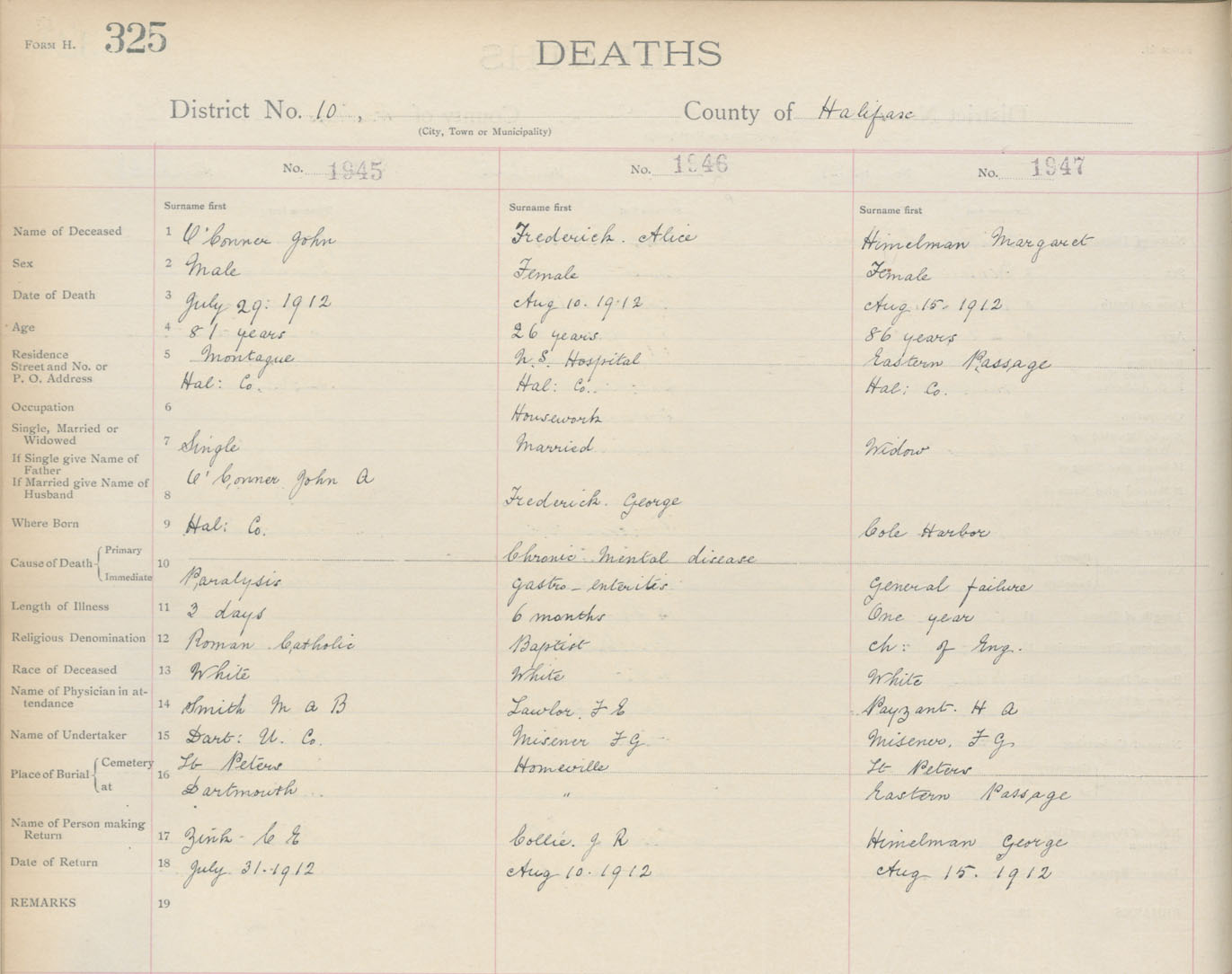 Death Registration: Year: 1912 book: 9 page: 325 number: 1947