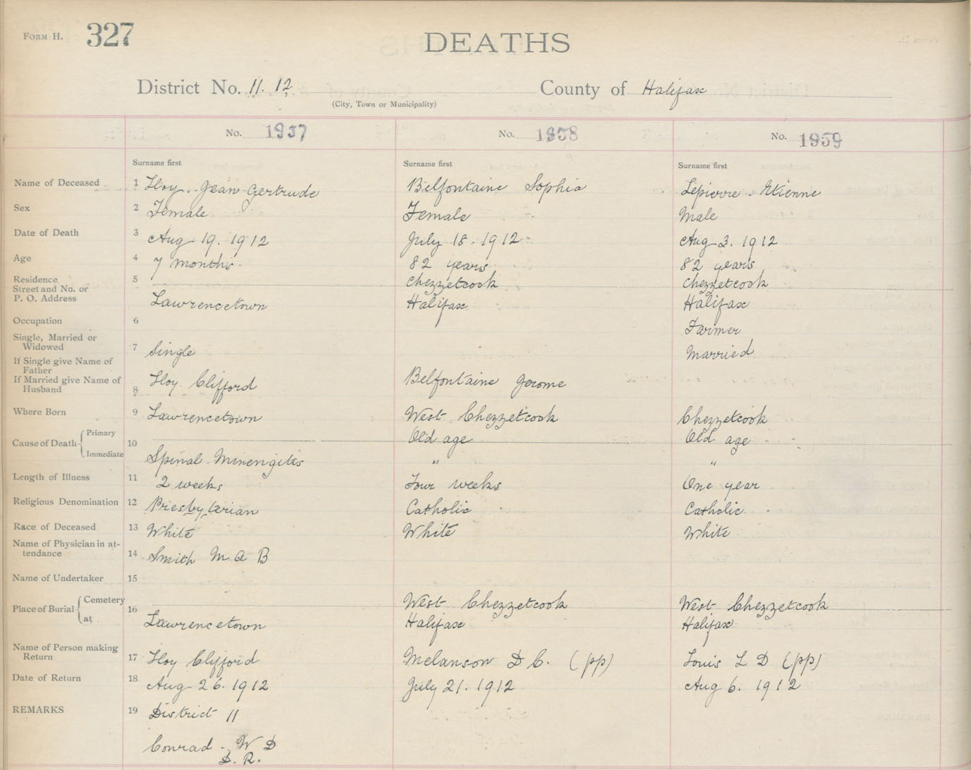 Death Registration: Year: 1912 book: 9 page: 327 number: 1959