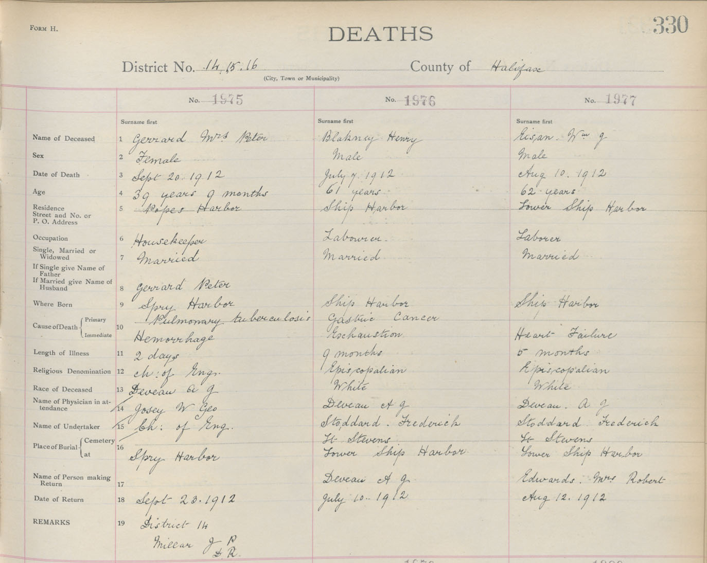 Death Registration: Year: 1912 book: 9 page: 330 number: 1977