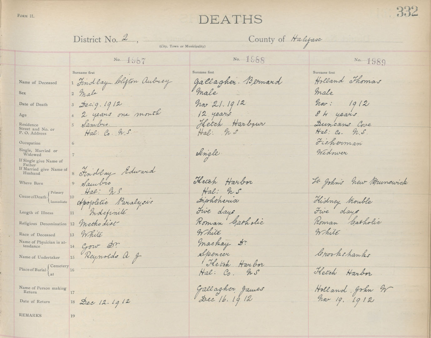 Death Registration: Year: 1912 book: 9 page: 332 number: 1989