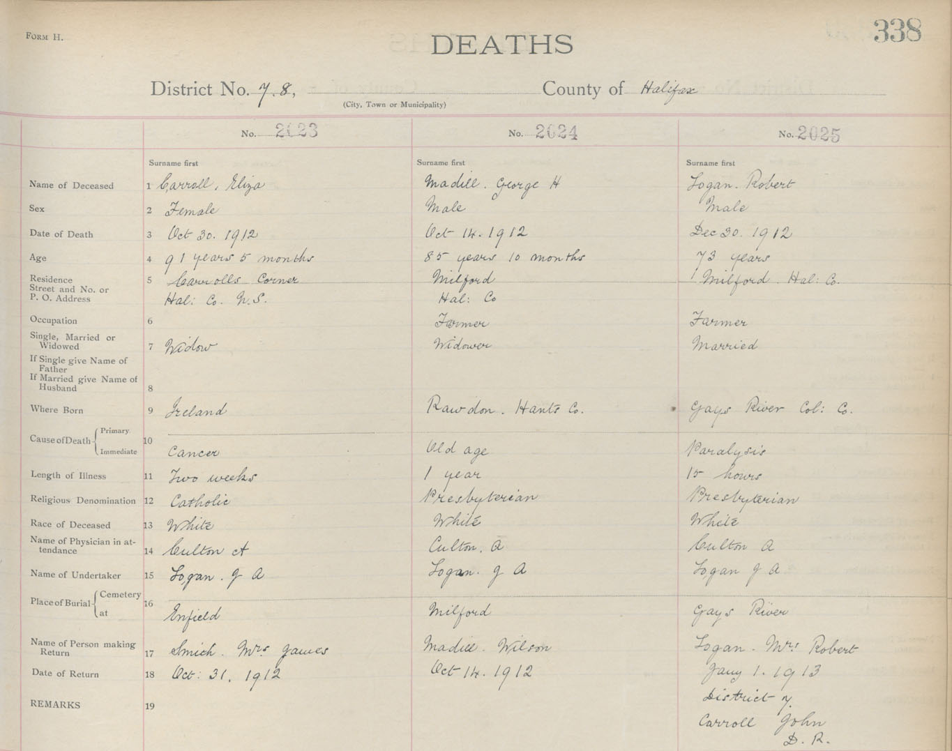 Death Registration: Year: 1912 book: 9 page: 338 number: 2025