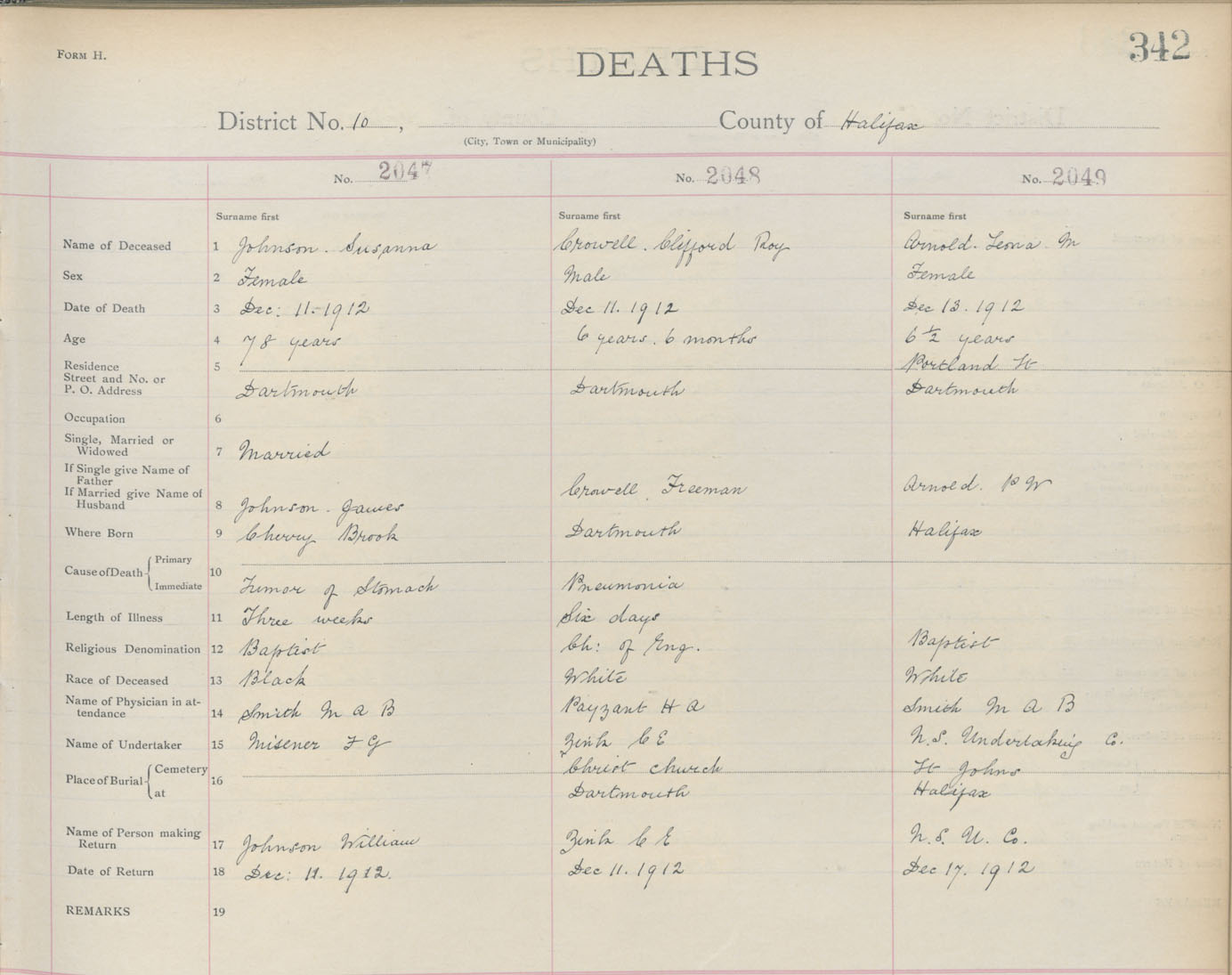 Death Registration: Year: 1912 book: 9 page: 342 number: 2049