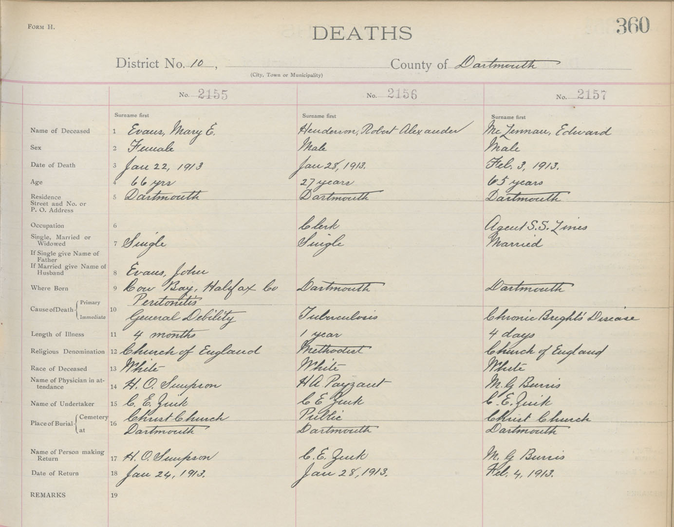 Death Registration: Year: 1913 book: 9 page: 360 number: 2157