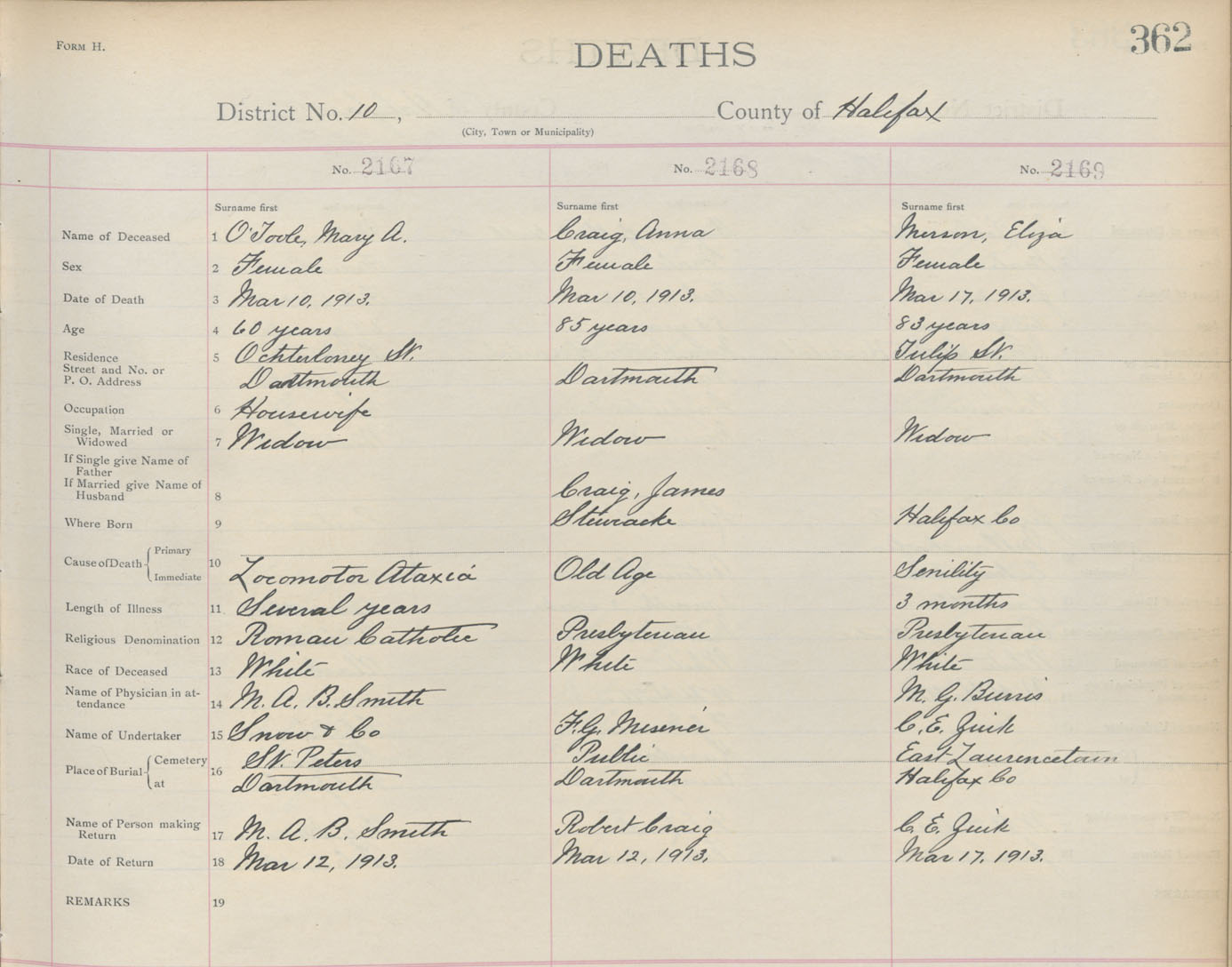 Death Registration: Year: 1913 book: 9 page: 362 number: 2169