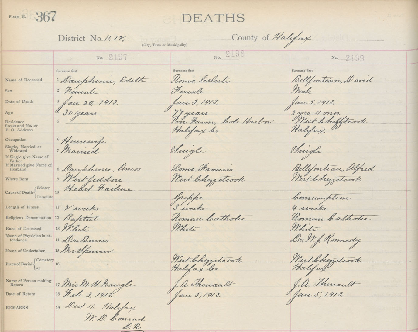 Death Registration: Year: 1913 book: 9 page: 367 number: 2199