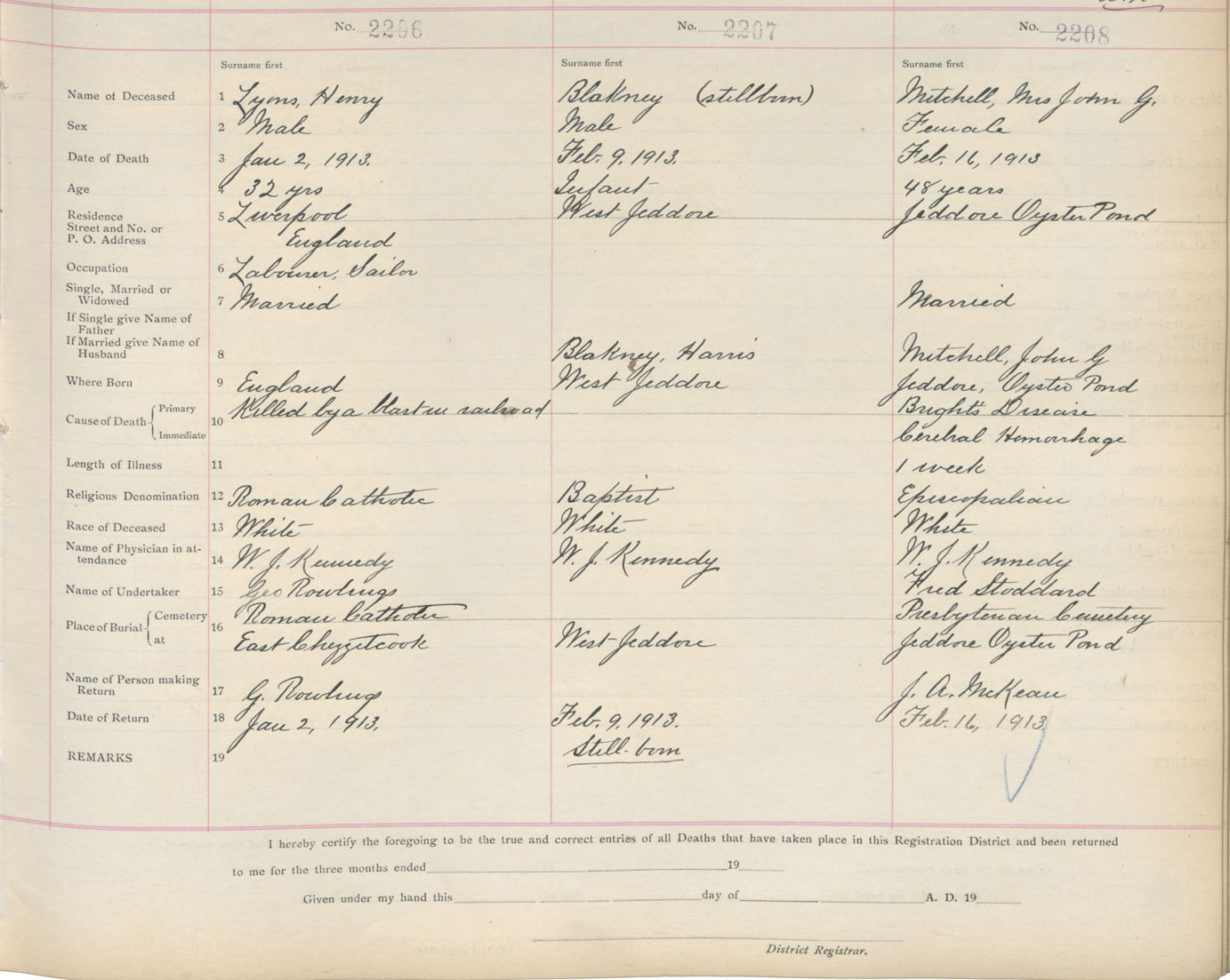 Death Registration: Year: 1913 book: 9 page: 368 number: 2208