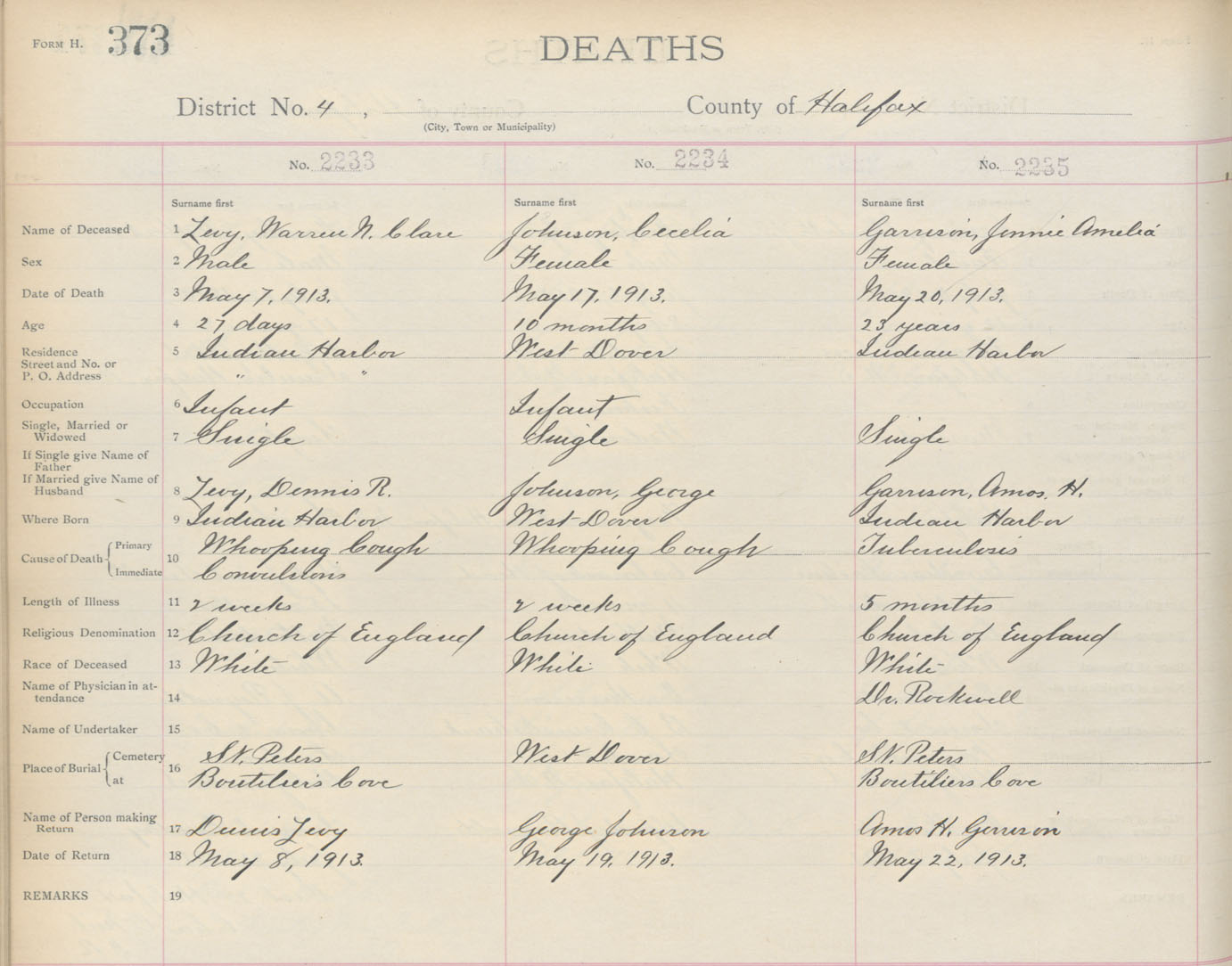 Death Registration: Year: 1913 book: 9 page: 373 number: 2233