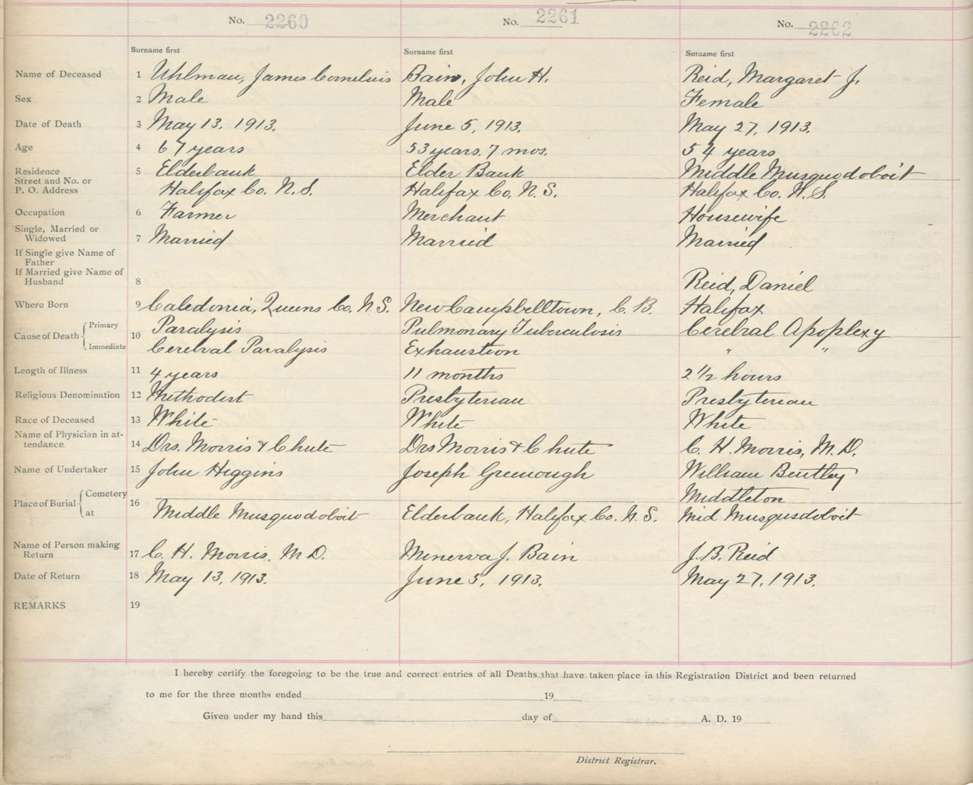 Death Registration: Year: 1913 book: 9 page: 377 number: 2260